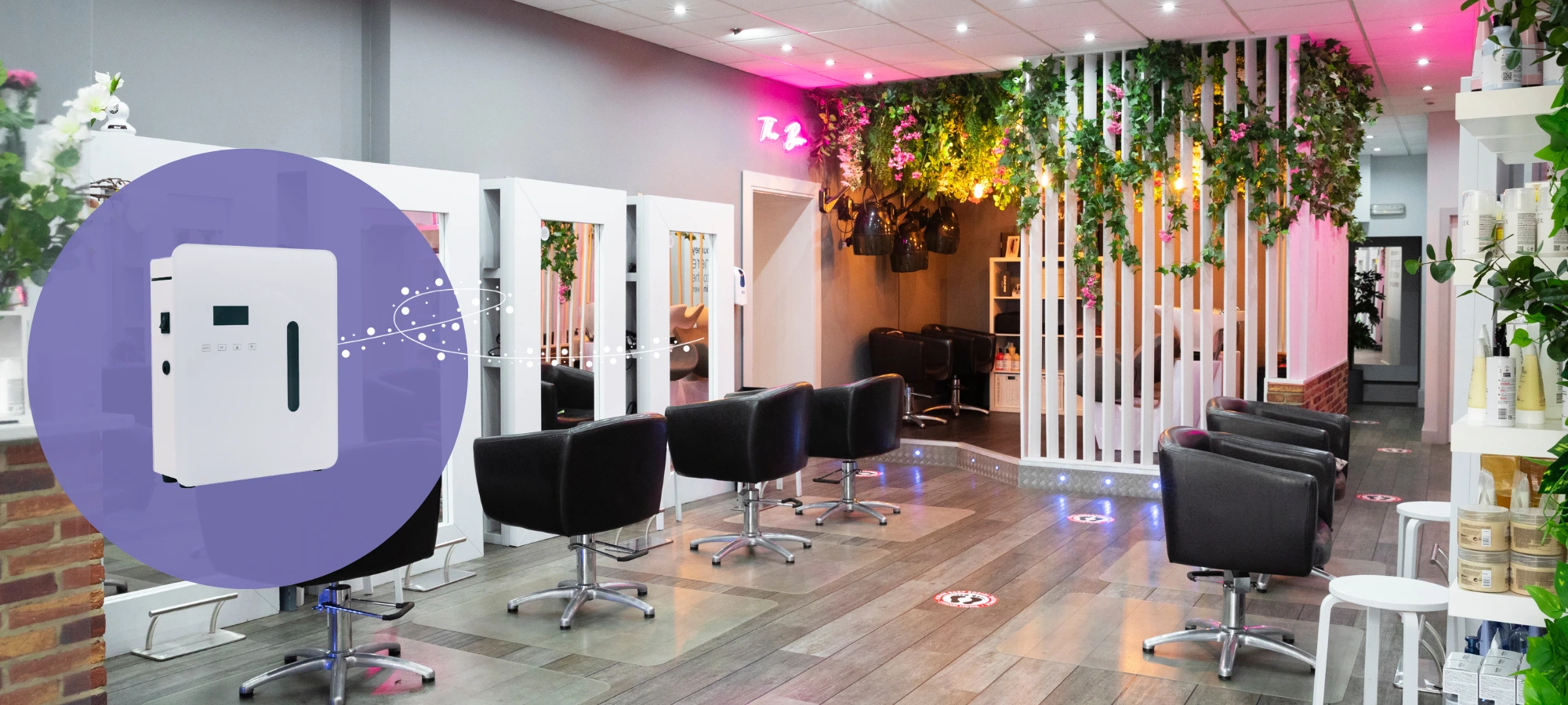 Salon de coiffure de 100 à 150 m² avec ventilation active